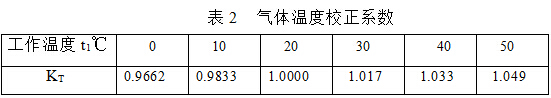转子流量计生产厂通过实验室校验和现场考验,证明在一般情况下按理想气体进行换算是可以的。同时还证明测量液体流量换算成气体流量时,流量系数变化不大,可忽略不计。因此用转子流量计测量液体、气体、及蒸汽是可以的,为便于换算,现将矫正系数分别列于表1、表2。