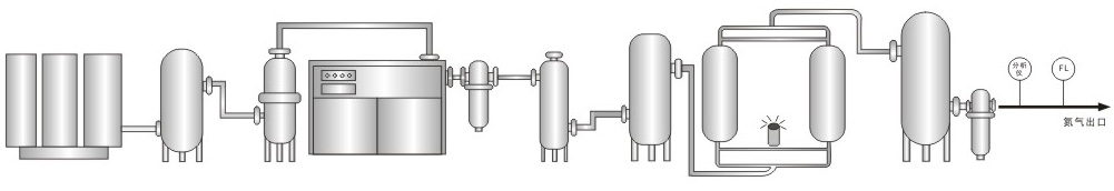 | 用户自配 | 冷冻式干燥机、精密过滤器、活性碳过滤器 | 空气缓冲罐、吸附器、阀门、控制器、压紧装置等 | 氮气缓冲罐、精密过滤器、氮分析仪、流量计、放空装置等 |